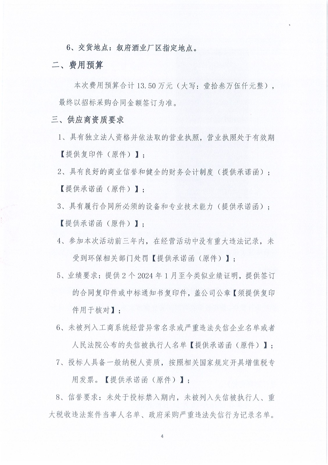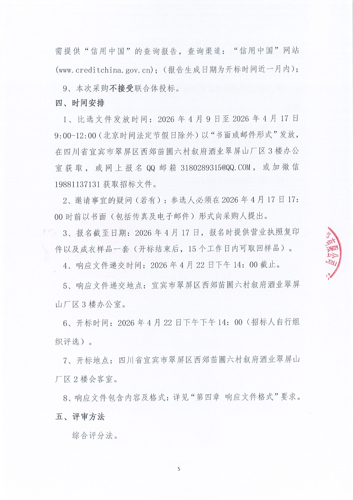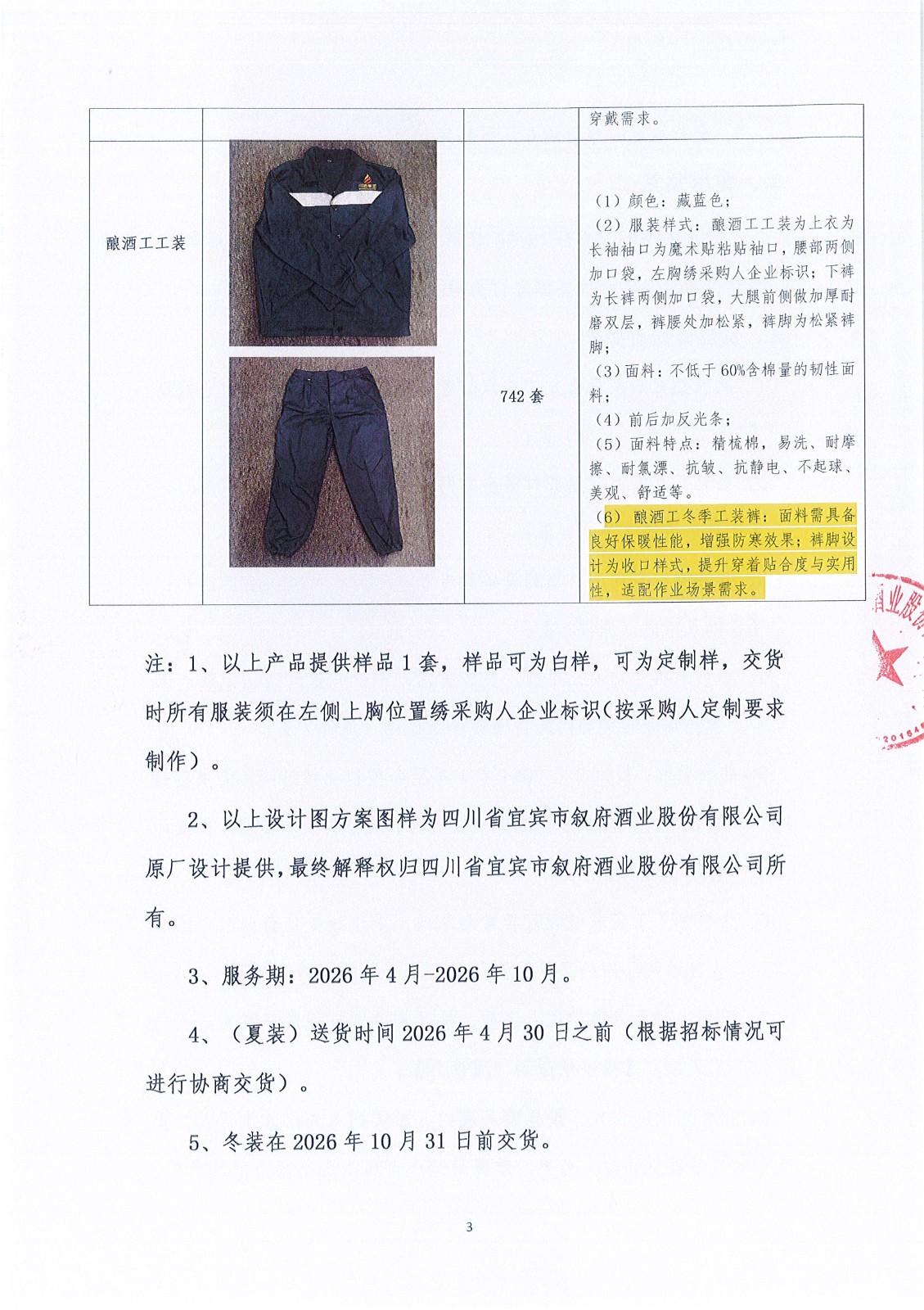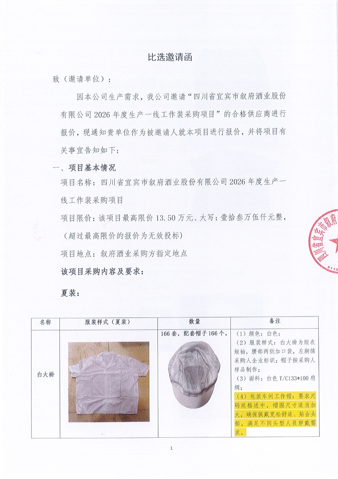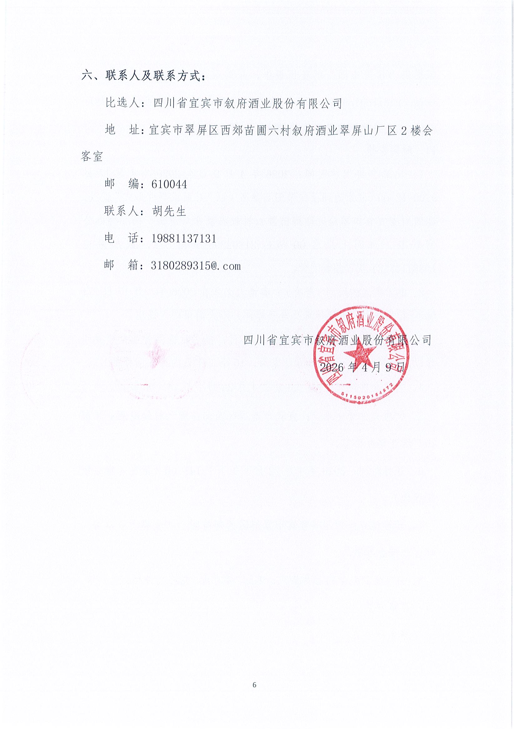 四川省宜宾市叙府酒业股份有限公司2026年度生产一线工作装采购项目比选招标公告
